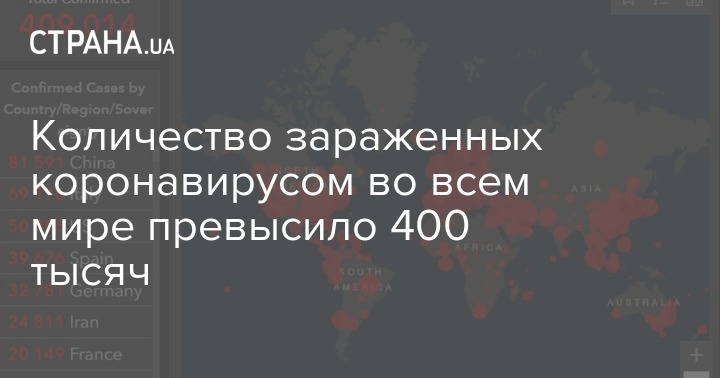 К вечеру 24 марта в мире более 409 тысяч человек заразились новым типом коронавируса.