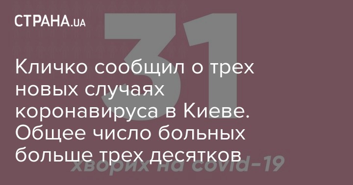 В украинской столице зафиксированы три новых случая заболевания коронавирусом. Общее количество заболевших в Киеве выросло до 31 человека.