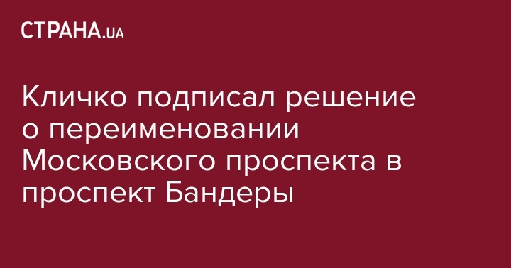 Ранее "Страна" сообщала, что Киевский городской голова Виталий Кличко уже не сможет ветировать решение Киеврады о переименовании Московского проспекта в проспект Бандеры. Не позднее 8 августа мэр подпишет это решение, после чего оно будет опубликовано в официальном издании Киевской городской власти – газете "Хрещатик" и вступит в силу