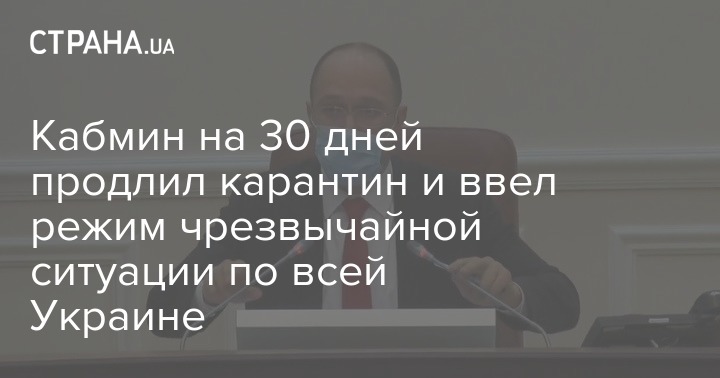 Кабмин на 30 дней продлил карантин и ввел режим чрезвычайной ситуации по всей Украине