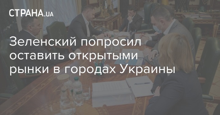 Даже в условиях карантина нельзя оставлять людей без возможности покупать продукты питания, поэтому в городах, где продовольственные рынки являются единственным источником продуктов, закрывать их не нужно. Об этом заявил президент Украины Владимир Зеленский во время селекторного совещания с мэрами областных центров и председателями ОГА, сообщается на сайте президента.