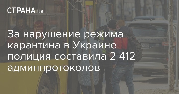 Национальная полиция составила 2 412 протоколов за нарушение правил карантина согласно статье 44-3 Кодекса Украины об административных нарушениях. Эти протоколы выписаны в период с 1 января по 25 марта.