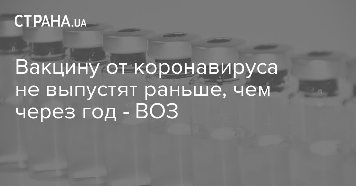 Вакцину от коронавируса не выпустят раньше, чем через год - ВОЗ
