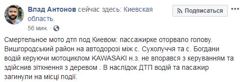 Под Киевом мотоциклист с пассажиркой влетел в дерево, девушке оторвало голову. Фото 18+