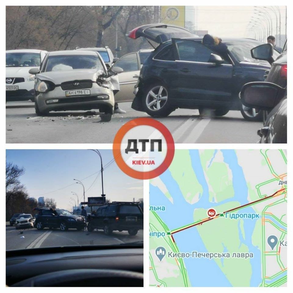Окзалось, что причиной затора стало тройное ДТП с пострадавшими в Киеве на Броварском проспекте у метро "Гидропарк". Об этом сообщает dtp.kiev.ua в Facebook.