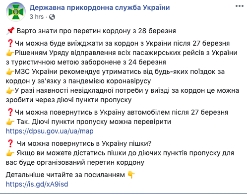 "Сегодня в пунктах пропуска на границе с Польшей значительно возросло количество граждан Украины, которые прибыли без собственного транспорта. В связи с этим, а также из-за дополнительных контрольно-профилактических мероприятий, наблюдается скопление людей в пунктах пропуска сопредельных стран. Государственная пограничная служба Украины принимает меры для скорейшего пропуска граждан без ослабления качества контроля. Привлечен дополнительный инспекторский состав, работают дополнительные полосы, где оформление происходит с применением мобильных комплексов пограничного контроля", - сообщили в Госпогранслужбе.