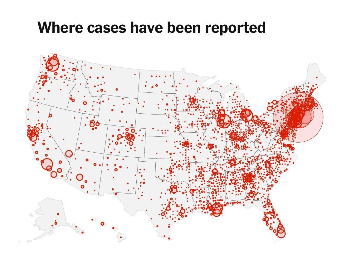 Карта инфицирования коронавирусом в США, фото: The New York Times