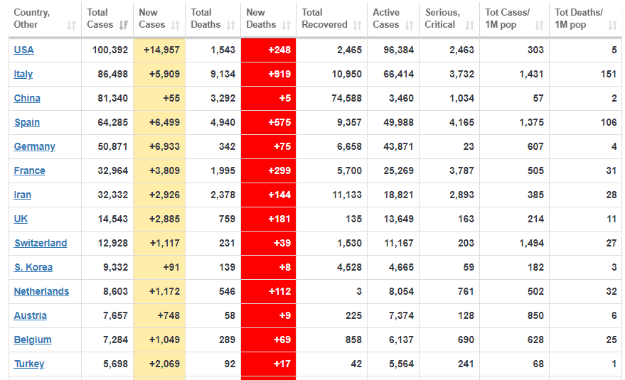 По количеству зараженных США обходят Италию и недавнего лидера Китай, где была зарегистрирована первая крупная вспышка коронавируса.