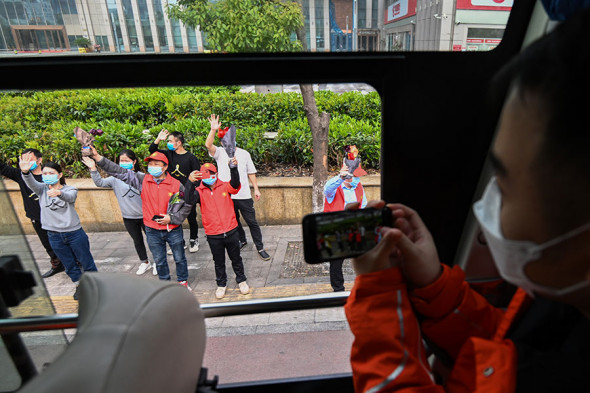 Уханьцы прощаются с врачами из провинции Гуандун, которые возвращаются домой после победы над коронавирусом. Фото: Xinghua