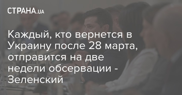 Каждый, кто вернется в Украину после 28 марта, будет на 14-дневной обсервации, заявил президент страны Владимир Зеленский в воскресном обращении к украинцам.