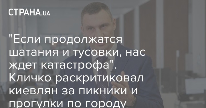 Мэр Киева Виталий Кличко эмоционально осудил киевлян, которые не соблюдают правила карантина, устраивают на природе пикники и массово выходят на прогулки по улицам столицы, не опасаясь коронавируса.
