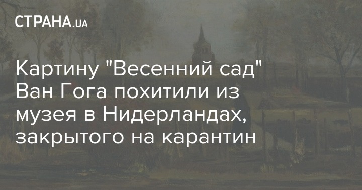 В нидерландском городе Ларене в ночь на 30 марта из музея "Зингер" похитили картину Винсента Ван Гога "Весенний сад". В настоящее время музей закрыт из-за пандемии коронавируса.