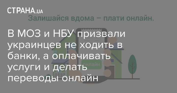 "Во время карантина по возможности оставайтесь дома и помните, что банковскими услугами можно воспользоваться дистанционно. Позаботьтесь о себе и о пожилых родственниках, помогите им оплатить коммунальные услуги онлайн!" - обратились к украинцам в МОЗ и НБУ.