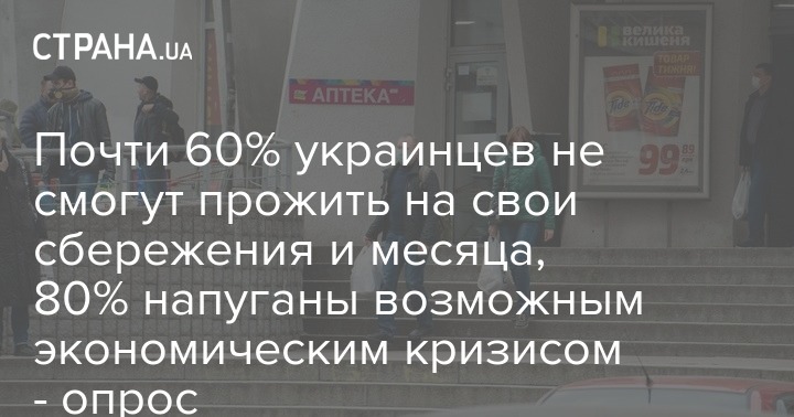 Больше половины украинцев не смогут прожить на свои сбережения и месяца в случае утраты источника дохода (зарплаты или пенсии). 80% жителей страны боятся затяжного экономического кризиса, который может наступить в Украине из-за коронавируса.