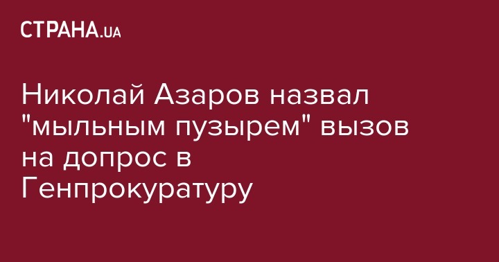 Бывший премьер-министр Николай Азаров отреагировал на вызов на допрос в Генеральную прокуратуру. Он назвал действия столичной прокуратуры - "очередным мыльным пузырем", а действия генпрокурора - "опричниной". Об этом Азаров написал на своей странице в Facebook.