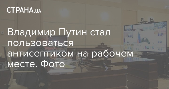 Флакон с антисептиком отчетливо видно на опубликованном на сайте Кремля фото президента России, сидящего за своим рабочим столом во время онлайн совещания.