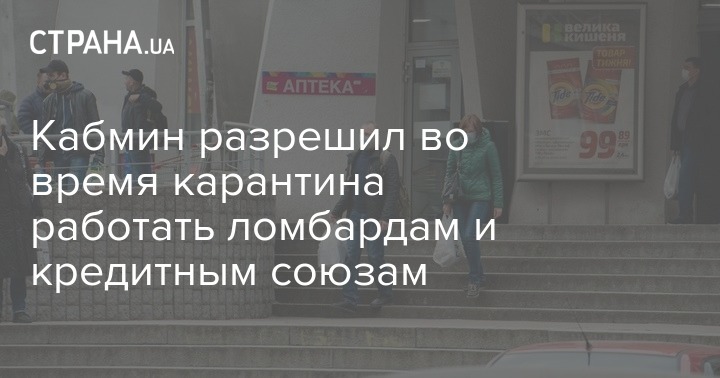 Правительство Украины расширило список разрешений во время карантина хозяйственной деятельности: вывело из-под запрета работу всех видов финансовых учреждений, включая ломбарды и кредитные союзы, а также разрешило аптекам работать круглосуточно.