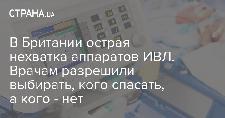В Британии острая нехватка аппаратов ИВЛ. Врачам разрешили выбирать, кого спасать, а кого - нет