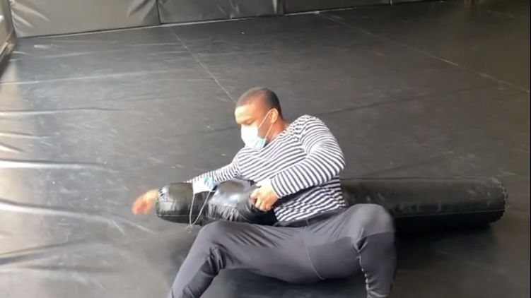 Беленюк опубликовал видео тренировки, во время которой он отрабатывал броски и технику борьбы на манекене. В это время он сам был в тельняшке, спортивных штанах и маске, также он надел маску и на "оппонента".
