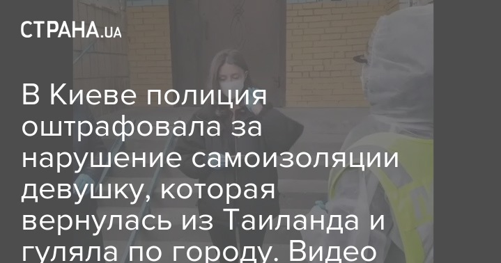 В Киеве выписали протокол о нарушении режима самоизоляции девушке, которая 29 марта вернулась с отдыха из Бангкока. Ей грозит штраф в 17 тысяч гривен.