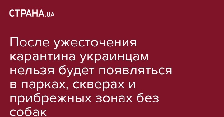 После ужесточения карантина украинцам нельзя будет появляться в парках, скверах и прибрежных зонах без собак