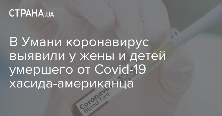 У жены и детей умершего в Умани 3 апреля от Covid-19 хасида из США тоже обнаружили коронавирус. По результатам анализов оказалось, что инфицированы 48-летняя супруга мужчины, его 18-летняя дочь и 16-летний сын.