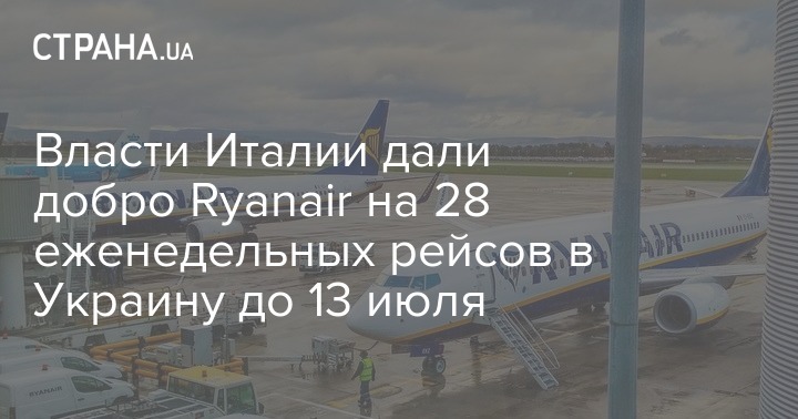 Итальянские власти предоставили ирландской лоукост-авиакомпании Ryanair временные права на выполнение 28 еженедельных рейсов между городами Италии и Украины до 13 июля 2020 года.