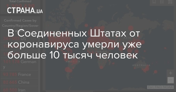 По состоянию на 21.20 по Кииеву количество смертей от коронавируса в Соединенных Штатах достигло 10 335. Лидерами по смертности являются город (3 048) и штат (937 человек) Нью-Йорк.
