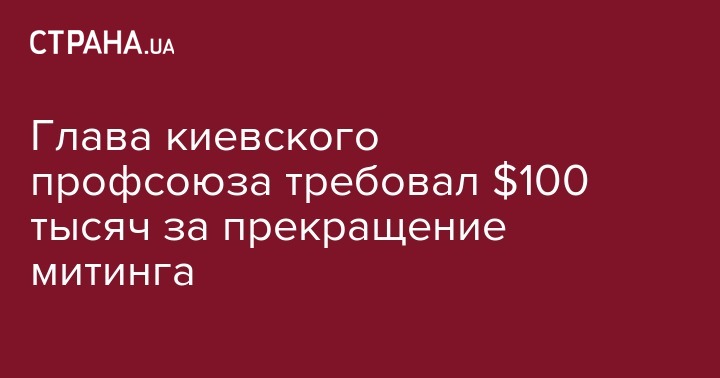 В Соломенский суд Киева направлены материалы дела в отношении председателя профсоюза, который требовал взятку в размере $100 тысяч за прекращение акции протеста. Об этом сообщает прокуратура Киевской области.