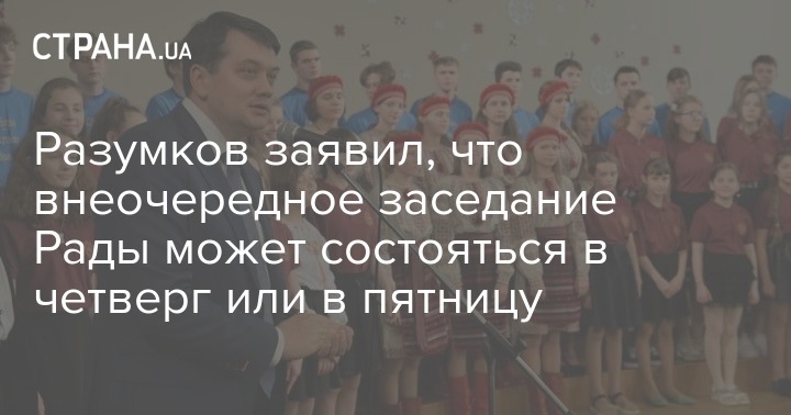 "Я думаю, что на этой неделе также будет внеочередное заседание Верховной Рады Украины. Я думаю, что это будет происходить ближе к концу недели. Возможно, четверг, возможно пятница", - сказал Разумков.