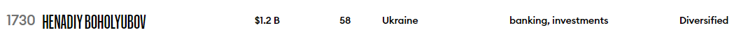 Геннадий Боголюбов - 1730 место, $1,2 млрд