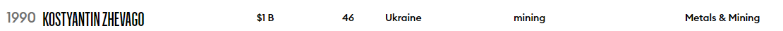 6. Константин Жеваго. Владелец Ferrexpo Константин Жеваго также занял 1990 место; состояние $1 млрд.