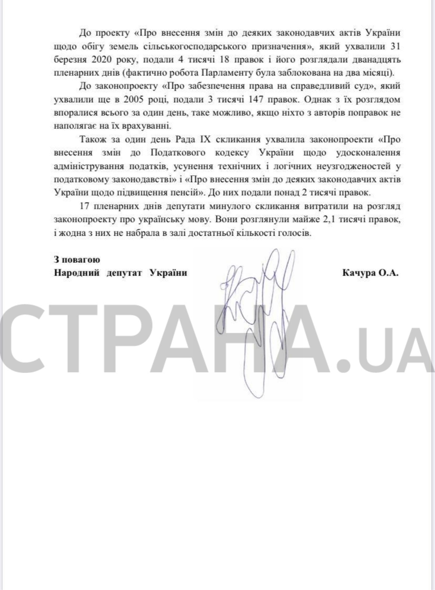 "Несмотря на то, что срок подготовки документа ко второму чтению сократили, народные депутаты Украины успели падать около 16,3 тыс. поправок - это абсолютный рекорд, и я предлагаю вам его официально зафиксировать после систематизации поправок и обнародования сравнительной таблицы ко второму чтению на сайте ВРУ", - говорится в документе.
