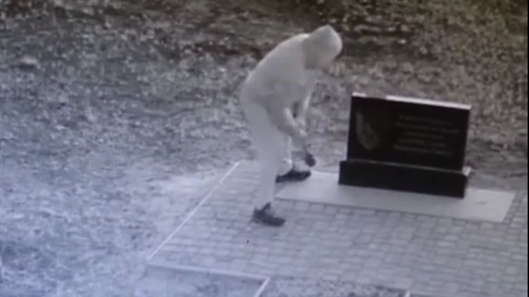 Нарушитель, который разбил памятник молотком, попал на видео в момент акта вандализма. Отметим, стелу недавно восстановили после похожего крушения, которое было в октябре 2019-го года.