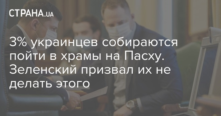 Так, Владимир Зеленский на совещании 9 апреля заявил, что 70% украинцев поддерживают карантинные меры, введенные в стране в связи с коронавирусом, а также проект "Пасха дома", предусматривающий проведение трансляций Пасхальных богослужений. По данным главы государства, 3% собираются посетить церковь в праздничные дни.