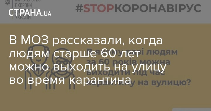 В МОЗ рассказали, когда людям старше 60 лет можно выходить на улицу во время карантина