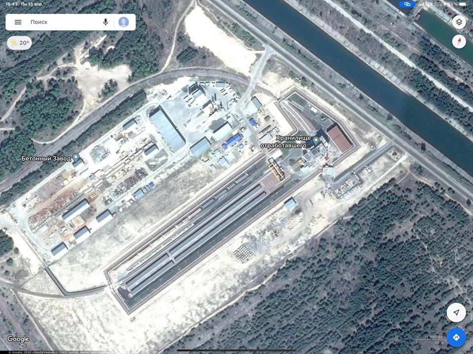 Он показал фото хранилищ из космоса и написал, что это огромная железобетонная конструкция, обнесенная забором, внутри которой емкости из монолитного железобетона, в которых "на сотни лет будут упрятаны радиоактивные отходы".