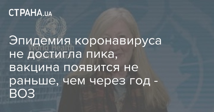 Эпидемия коронавируса не достигла пика, вакцина появится не раньше, чем через год - ВОЗ