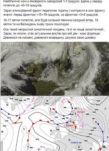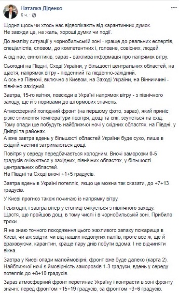 Об этом сообщила синоптик Наталья Диденко на своей странице в Facebook.