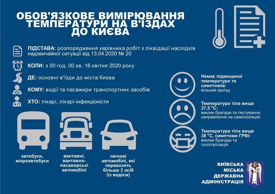 В Киеве вновь объявили о повальных проверках температуры на въездах и выездах. В КГГА уже анонсировали такие меры с 6 апреля, но на практике до этого так и не дошло.