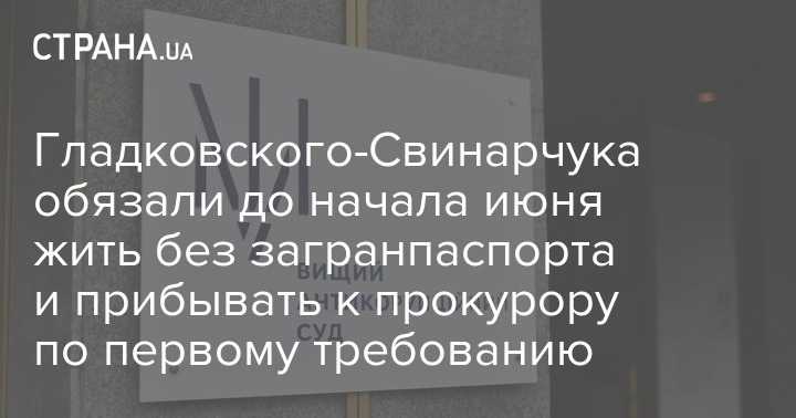 Гладковского-Свинарчука обязали до начала июня жить без загранпаспорта и прибывать к прокурору по первому требованию