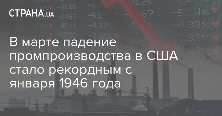 Объем промышленного производства в США в марте упал на 5,4% по сравнению с февралем. Такие темпы падения стали максимальными за 74 года - с января 1946-го. Обрушение превысило худшие ожидания экспертов, которые прогнозировали снижение на 4%.