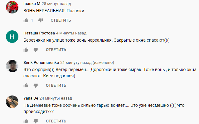 Во второй половине дня 16 апреля, после того, как Киев накрыла мощная пыльная буря, жители столицы начали массово жаловаться на смог и запах дыма и гари, который ощущается даже при закрытых окнах.