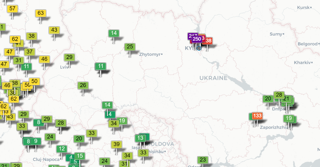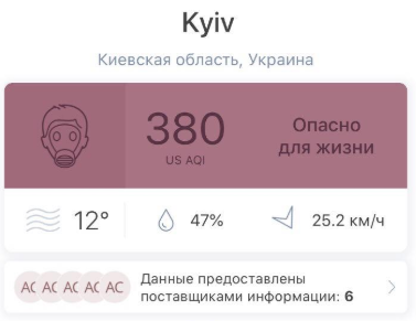 Индекс качества воздуха достигает 300-400 единиц. Это угрожающий показатель: в других городах Украины он редко превышает 60.