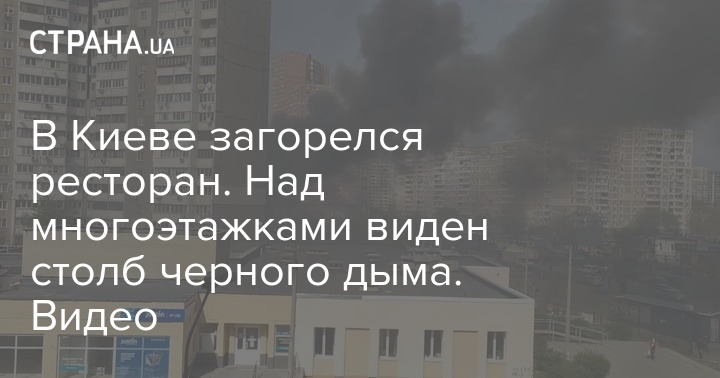 В Киеве загорелся ресторан. Над многоэтажками стоит столб черного дыма. Скриншот из видео