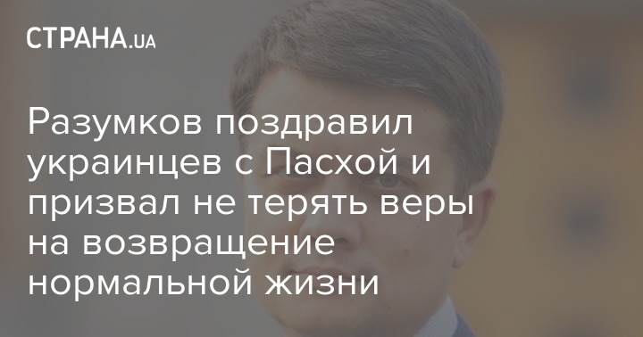 Спикер Верховной Рады Дмитрий Разумков обратился к украинцам по случаю праздника Пасхи и пожелал всем не терять надежды на возвращение привычного темпа жизни.