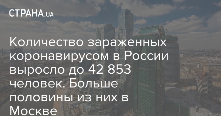 Количество зараженных коронавирусом в России за сутки увеличилось на 6 060 человек. Общее число больных составляет 42 853 человек.