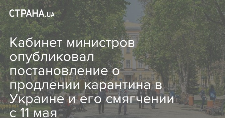 Правительство Украины опубликовало постановление о смягчении карантина с 11 мая и его продлении до 22 мая.