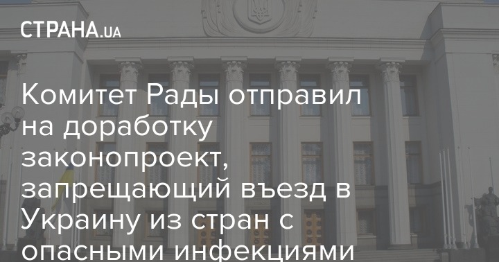Законопроект №3321 "О внесении изменений в некоторые законы Украины относительно защиты населения от распространения инфекционных болезней", предусматривающий запрет въезда в Украину людей из стран/регионов, где зафиксированы опасные инфекционные болезни, отправлен на доработку. Такое решение принял комитет Верховной Рады по вопросам интеграции Украины с Европейским Союзом на внеочередном заседании, сообщается на сайте Аппарата Верховной Рады.