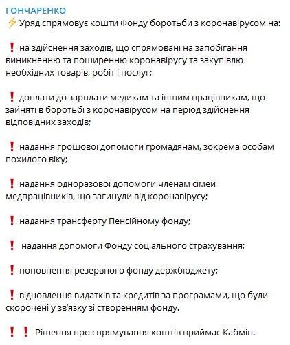 Гончаренко добавил, что решение о направлении средств принимает Кабмин.